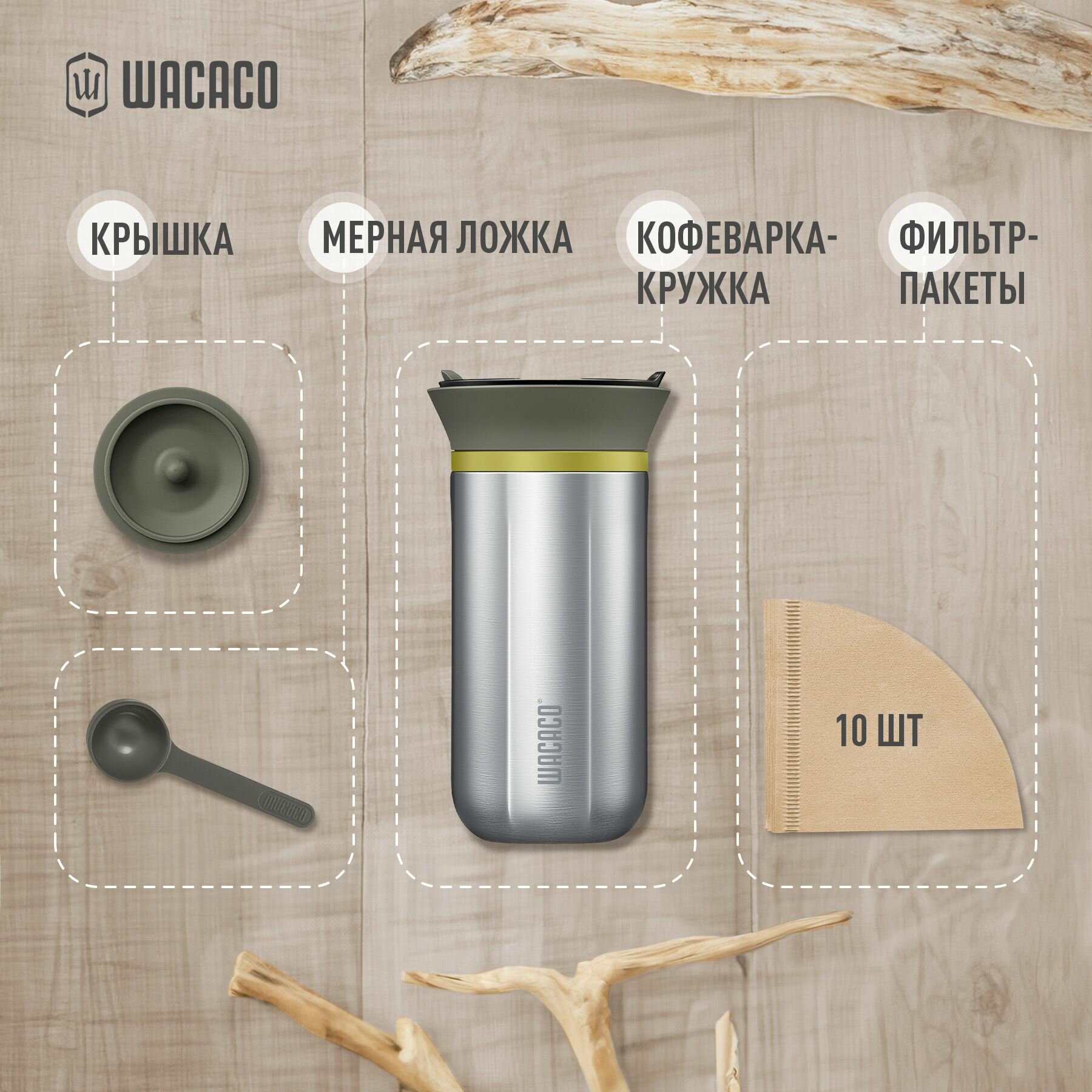 СохранитьПортативная капельная кофеварка Wacaco Cuppamoka для фильтр кофе, термокружка с вакуумной изоляцией из нержавеющей стали с двойными стенками и герметичной крышкой WCCCPM, объем 300 мл, цвет серый интересное: