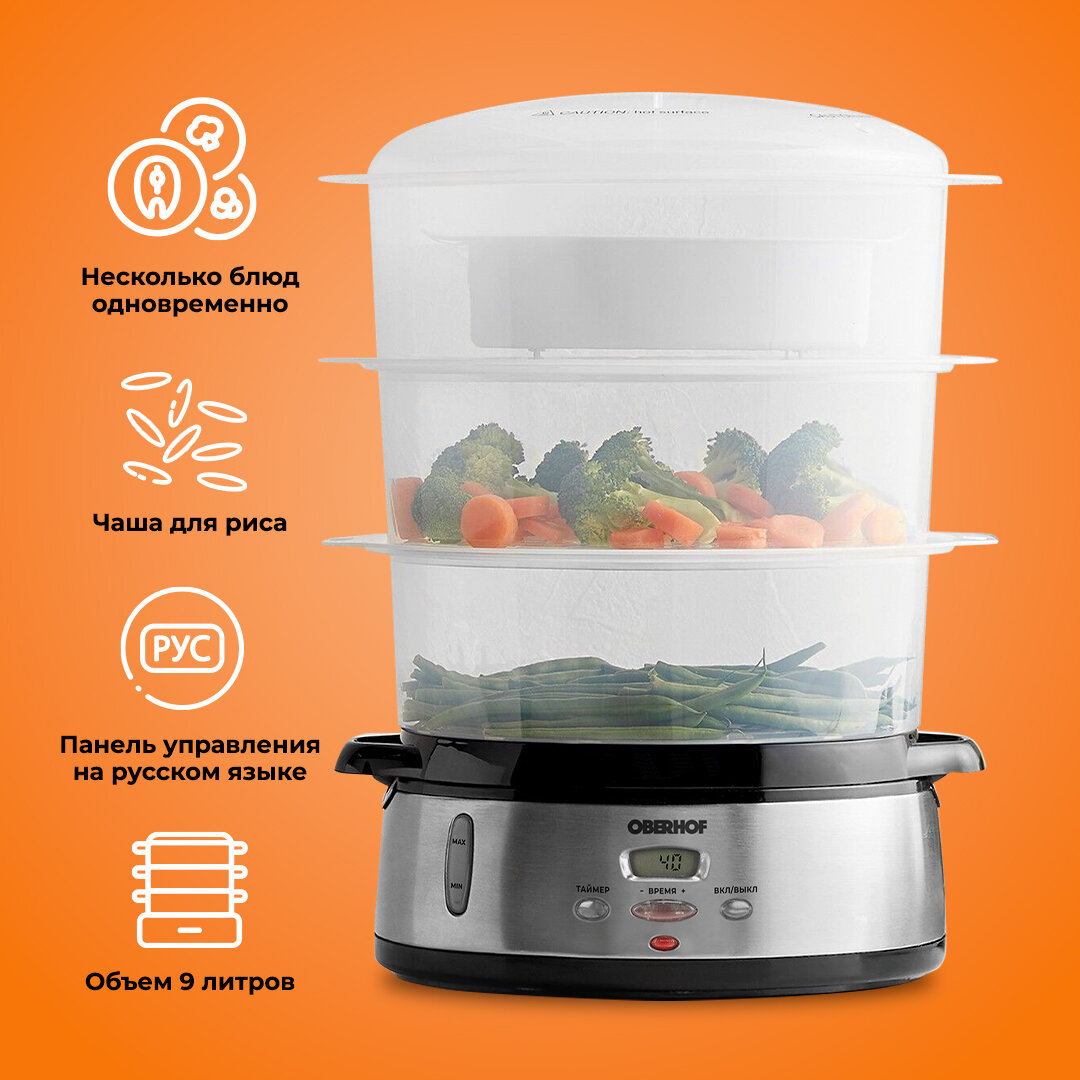 Купить Пароварка электрическая с 3-мя ярусами, электронным управлением, таймером ,800 Вт , Oberhof "Leichtkche" P-09