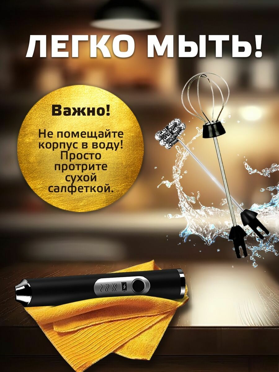 Капучинатор и вспениватель для молока электрический ручной Classmark беспроводной, венчик для взбивания с зарядкой от USB, взбиватель в пенку сливок для кофе интересное: