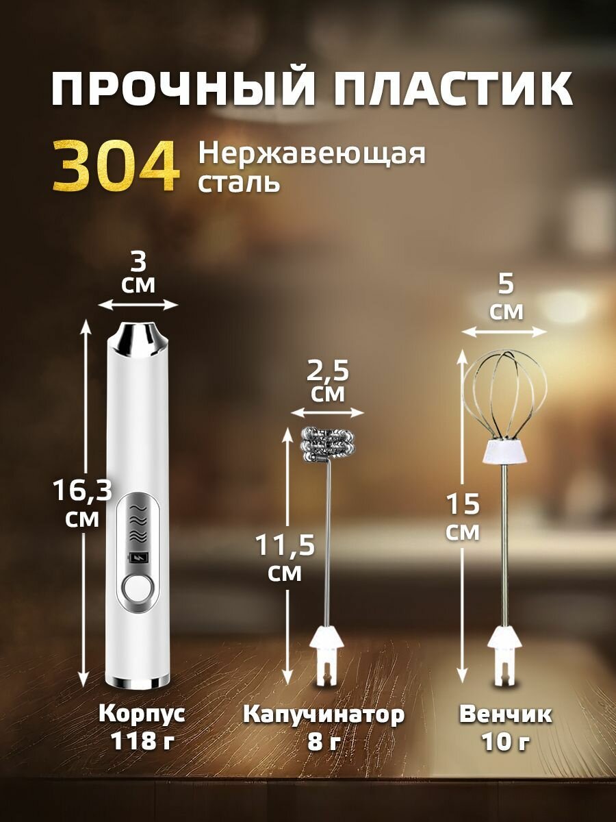 Вспениватель Classmark, для молока и сливок, беспроводной, 2 насадки, белый интересное: