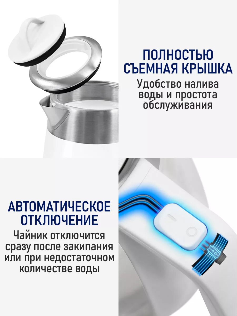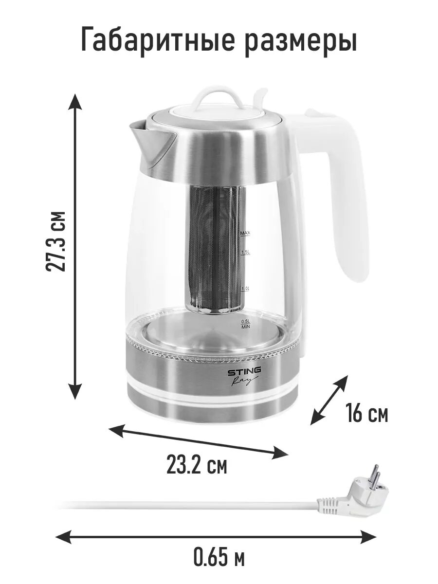 Электрический чайник STINGRAY ST-KT3006A белый стеклянный с подсветкой 1,8 л интересное: