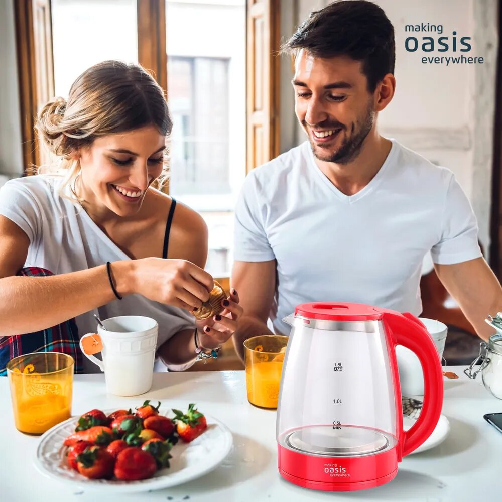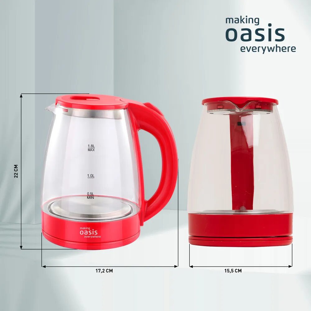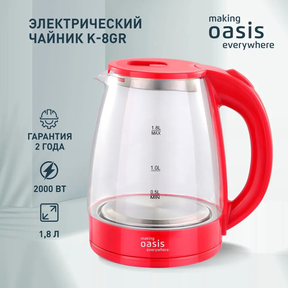 Купить Чайник электрический Oasis K-8GR, 1,8 л, 2000 Вт, стекло, красный