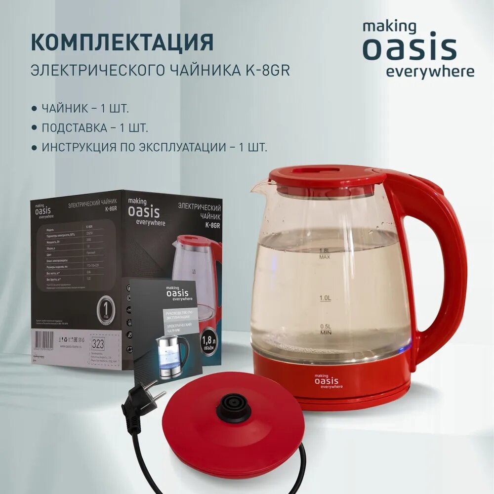 Чайник электрический Oasis K-8GR, 1,8 л, 2000 Вт, стекло, красный интересное: