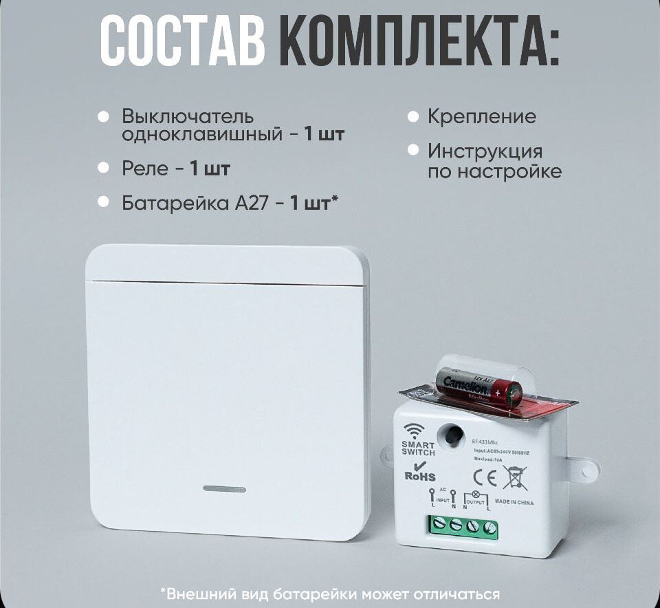 Беспроводной выключатель. Комплект умный с реле (полный)+батарейка ! интересное: