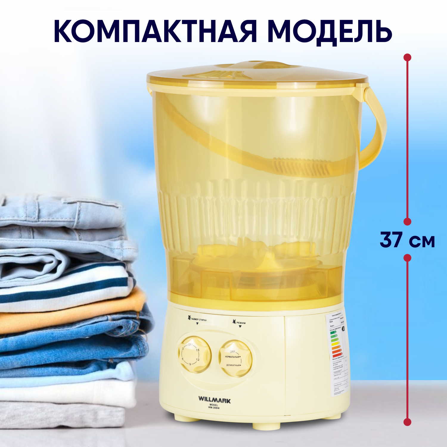 Стиральная машина Willmark WM-20BW, активаторная, желтая, 2кг интересное: