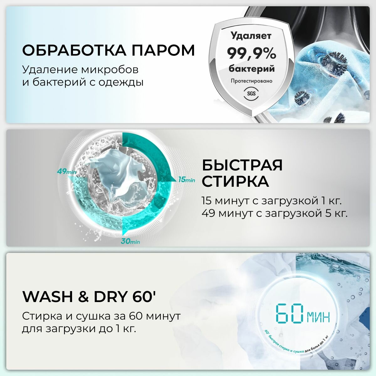 | Расход воды за стирку | 36 л |