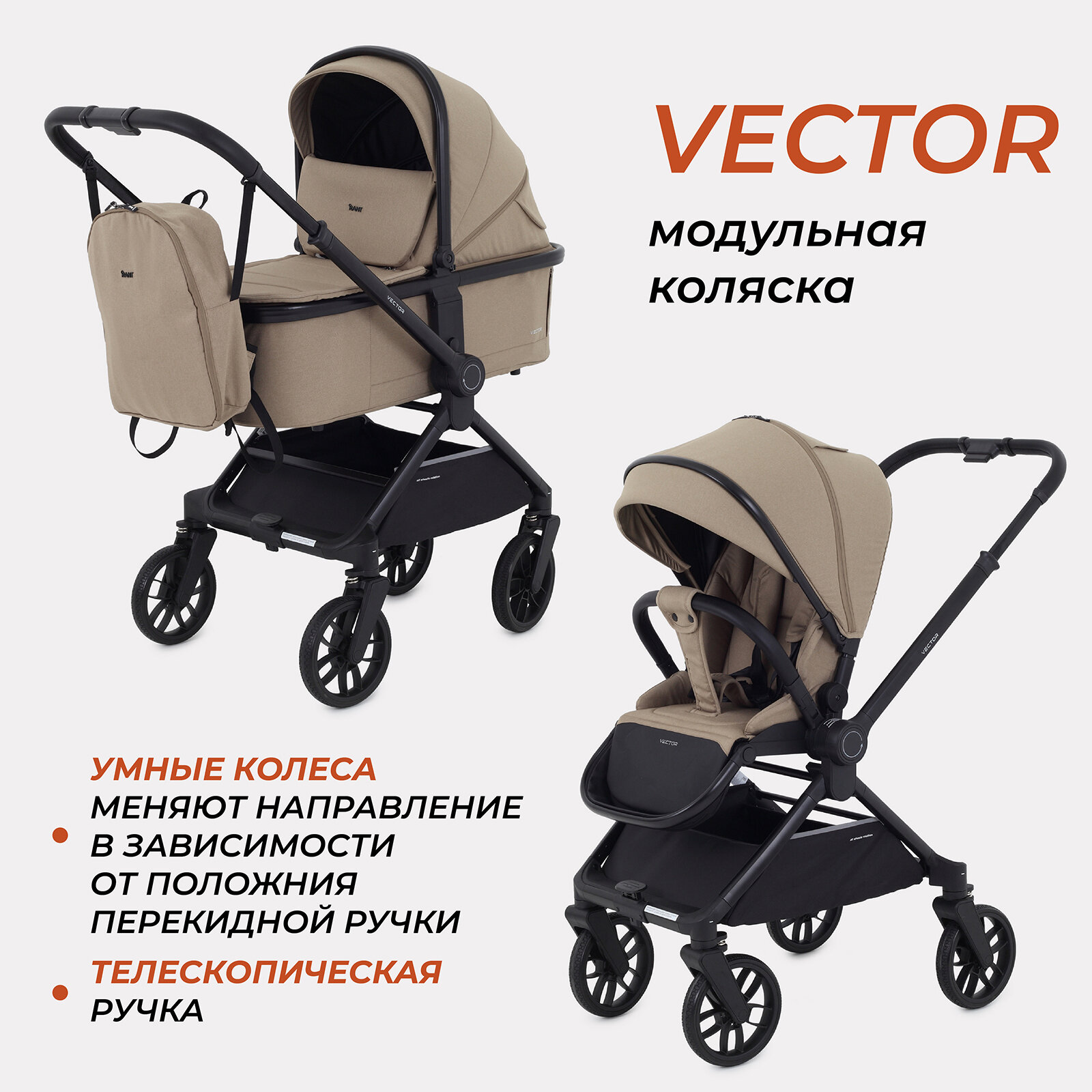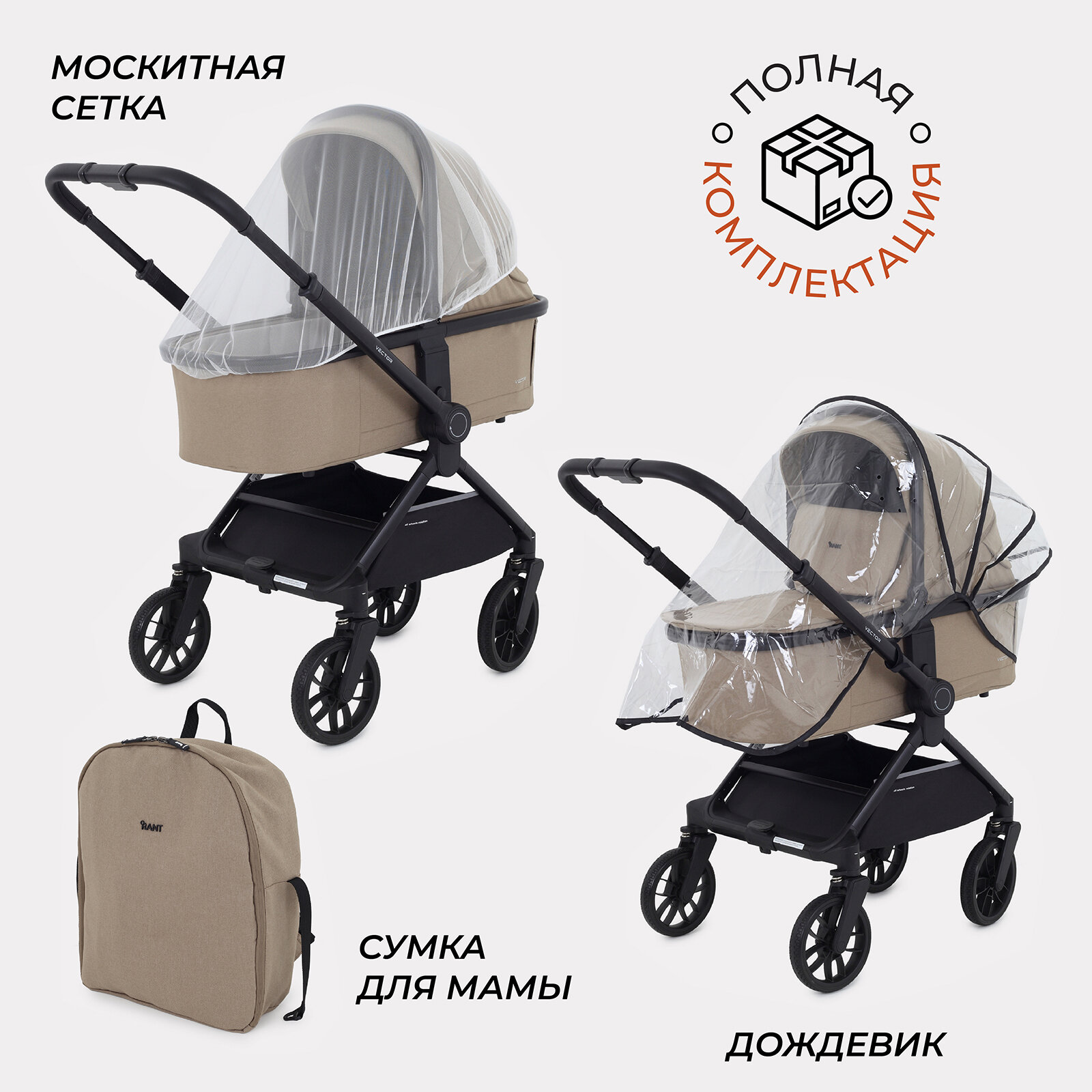 Коляска детская универсальная всесезонная с перекидной ручкой Rant Vector 2 в 1 Latte интересное: