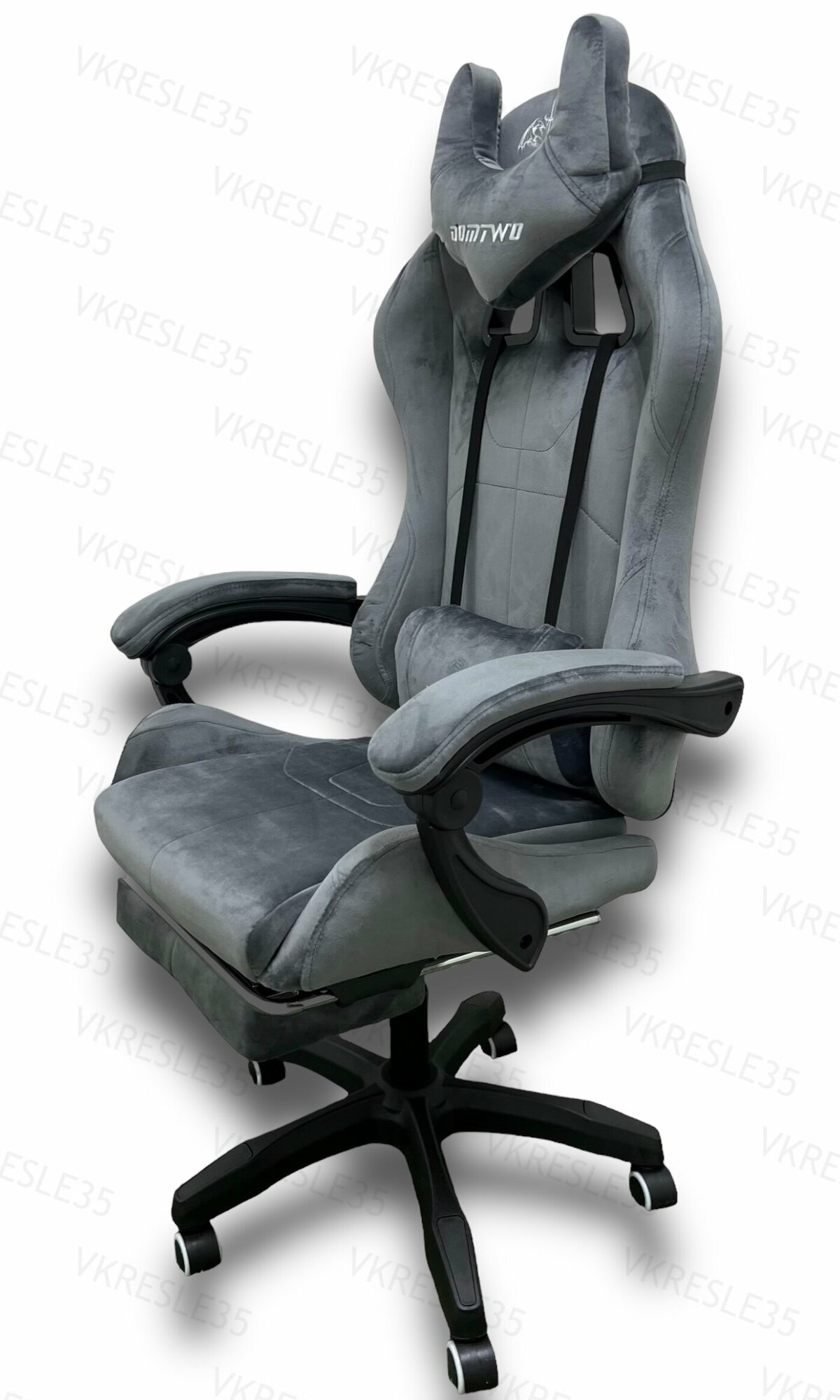 Купить Игровое Компьютерное Кресло, цвет серый, Велюр с подставкой для ног