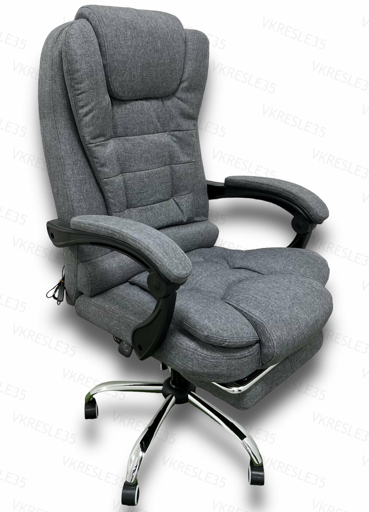 Компьютерное кресло - Кресло Руководителя, функция Вибромассажа , Тканевое, с подставкой для ног, цвет темно-серый