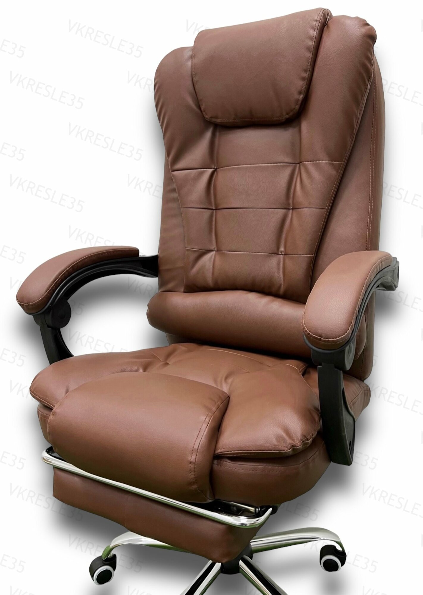 Компьютерное кресло - Кресло Руководителя, функция Вибромассажа , цвет коричневый, с подставкой для ног