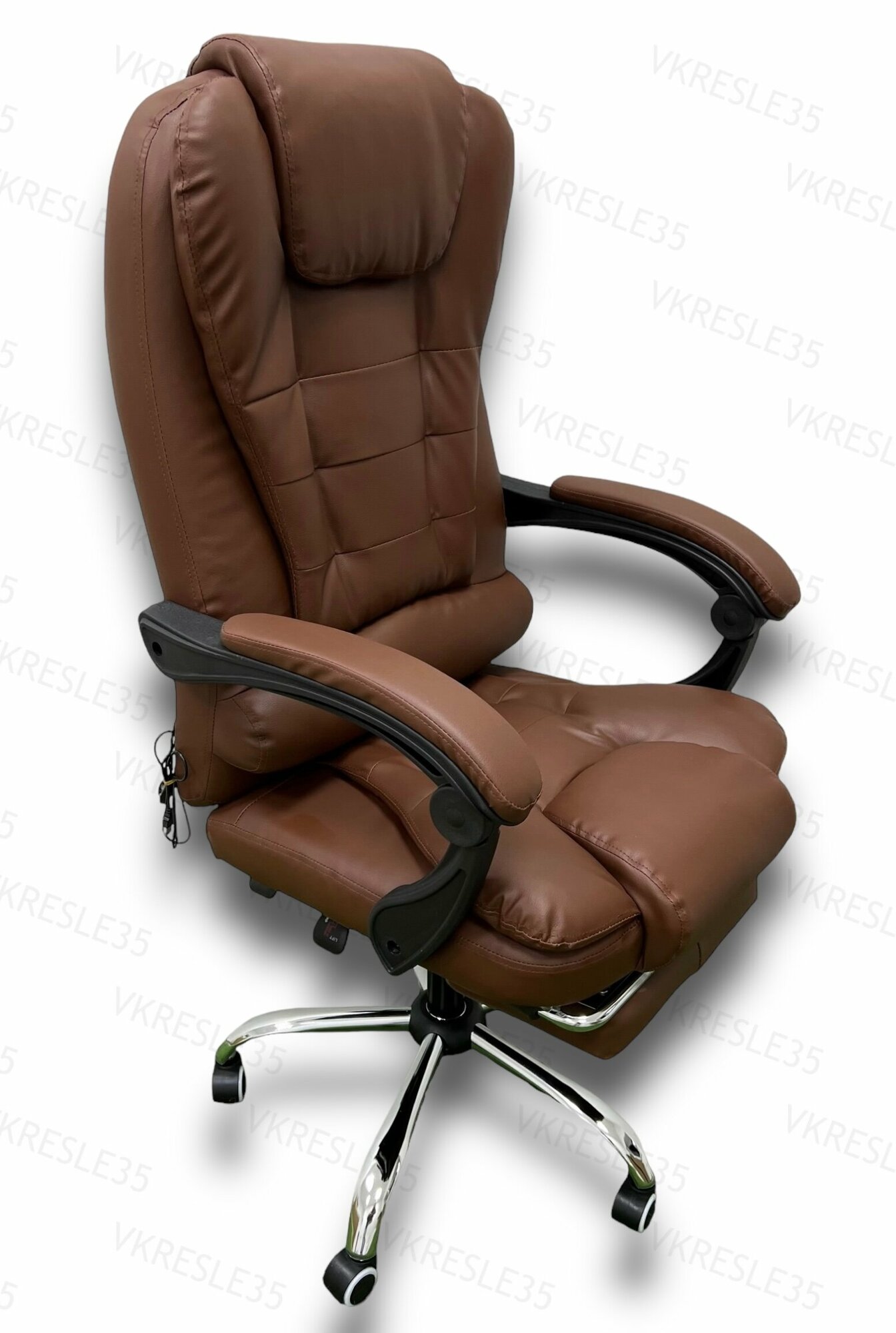 Компьютерное кресло - Кресло Руководителя, функция Вибромассажа ,цвет коричневый, с подставкой для ног