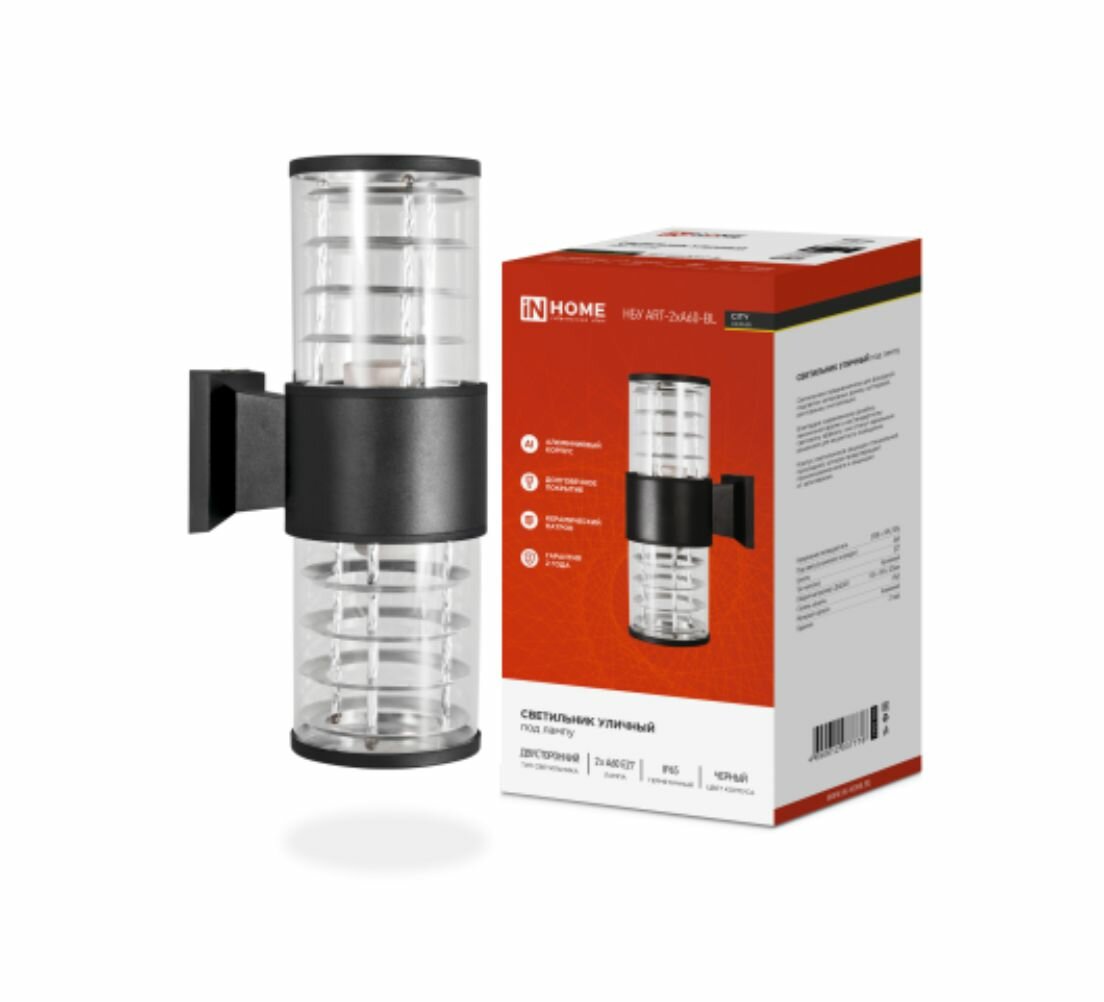 Светильник уличный диодный НБУ ART-2хA60-BL ал., лампа 2хA60 E27 черный IP65 IN HOME 4690612037776