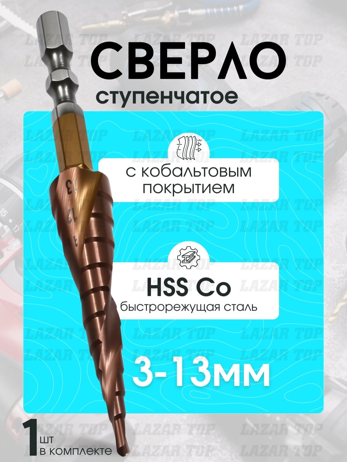 Купить Сверло LAZAR TOP HSS-Co 3-13 1/4HEX-E, ступенчатое, с кобальтовым покрытие, 77мм