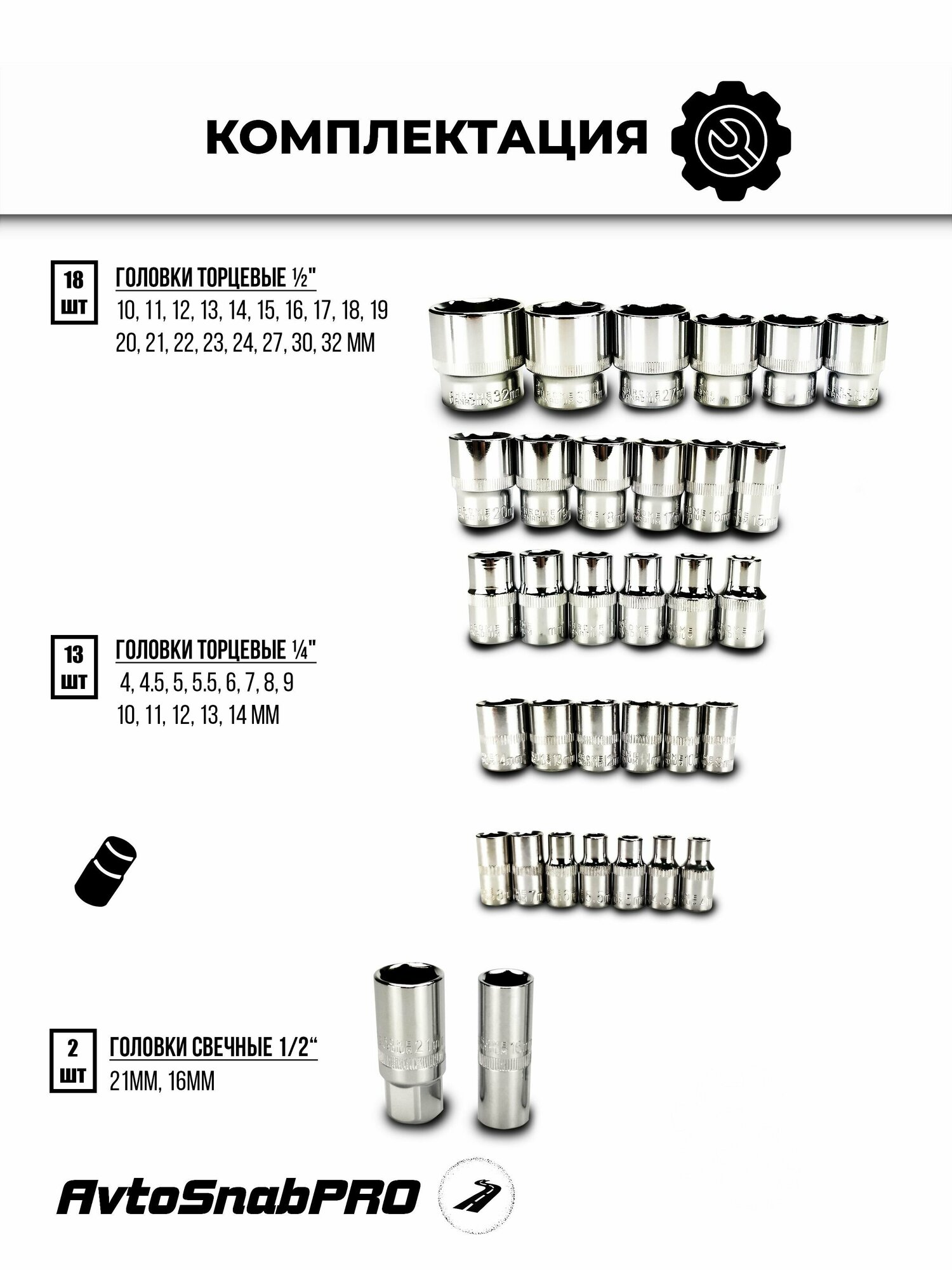 Набор инструментов AUTOVIRAZH AV Steel 1/2 профессиональный 32 предмета