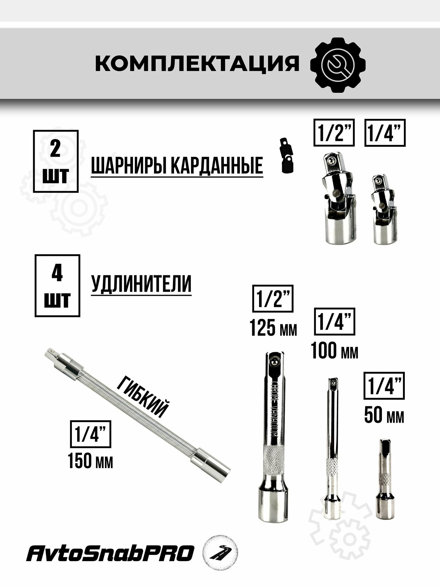 | Аксессуары в комплекте | бита-адаптер для торцевых головок / гибкий удлинитель для бит / гибкий удлинитель для головок / держатель для бит / переходник для головок / удлинитель для бит / удлинитель для головок / шарнир карданный для головок |