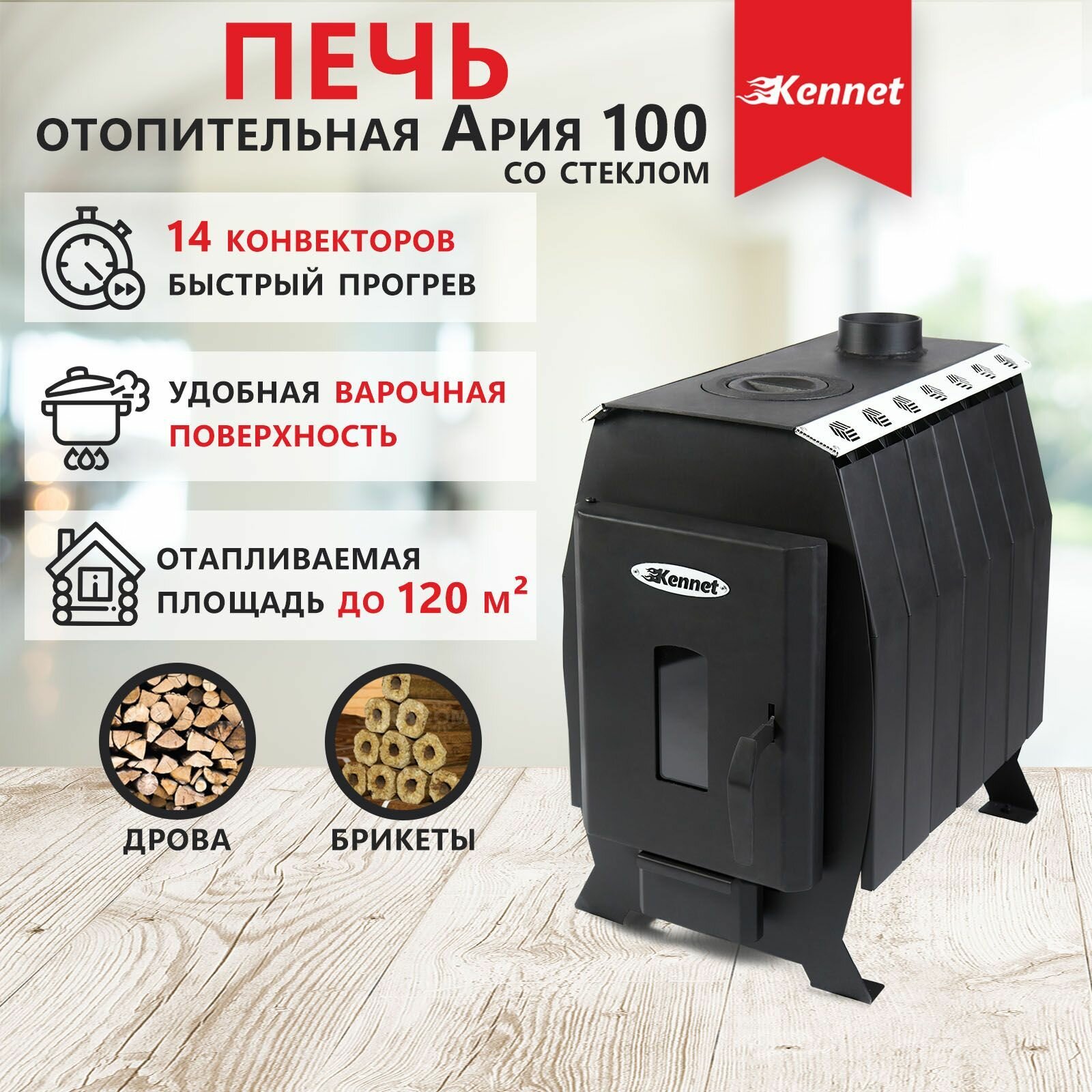Отопительная печь дровяная Kennet Ария 100 (без стекла)