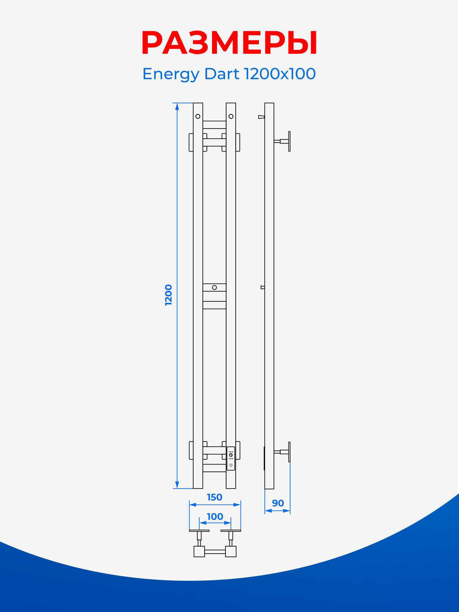 Полотенцесушитель электрический узкий Energy DART 1200х100 с терморегулятором и таймером, белый цвет
