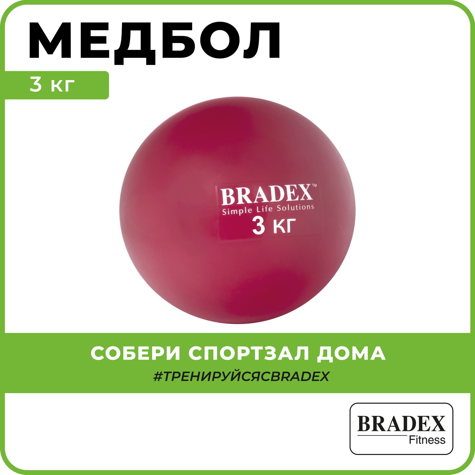 Медбол 3 кг Bradex, спортивный резиновый мяч для фитнеса и кроссфита