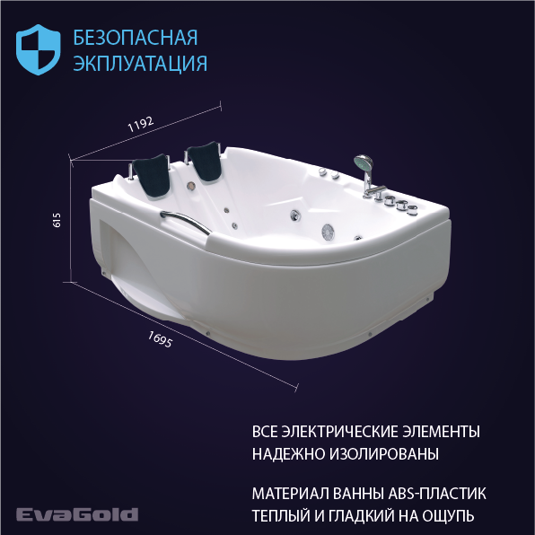 Гидромассажная ванна EvaGold OLB-807 R 120х170х65