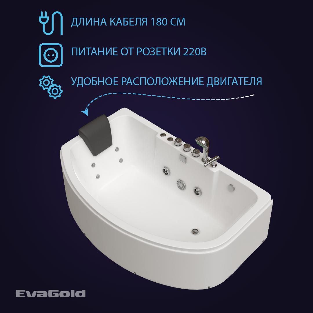 Гидромассажная ванна EvaGold левая 160х102х61, модель ZV506.4 белый для ванной