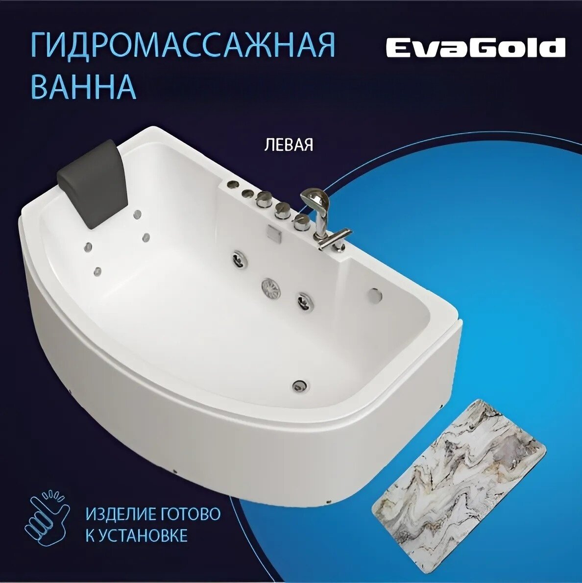 Купить Гидромассажная ванна EvaGold левая 160х102х61, набор ZV506.6 белый для ванной с ковриком бело-золотой мрамор