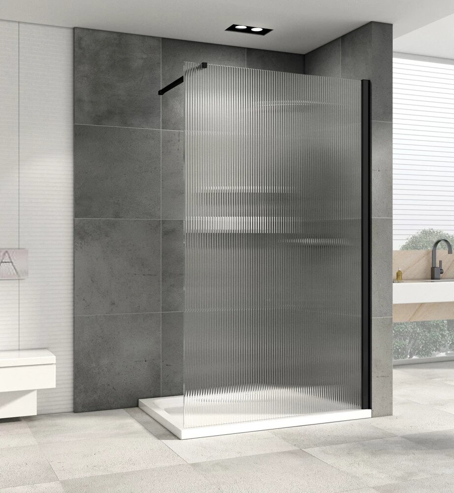 Душевая перегородка Abber Immer Offen 90 AG61091R8 профиль Черный стекло рифленое