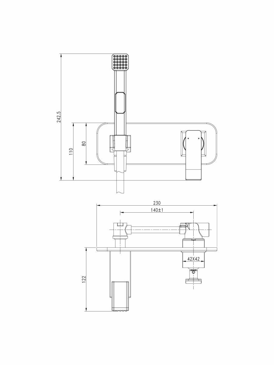 Смеситель с гигиеническим душем, лейкой, настенный D-LIN D180201 хромированный, латунь.