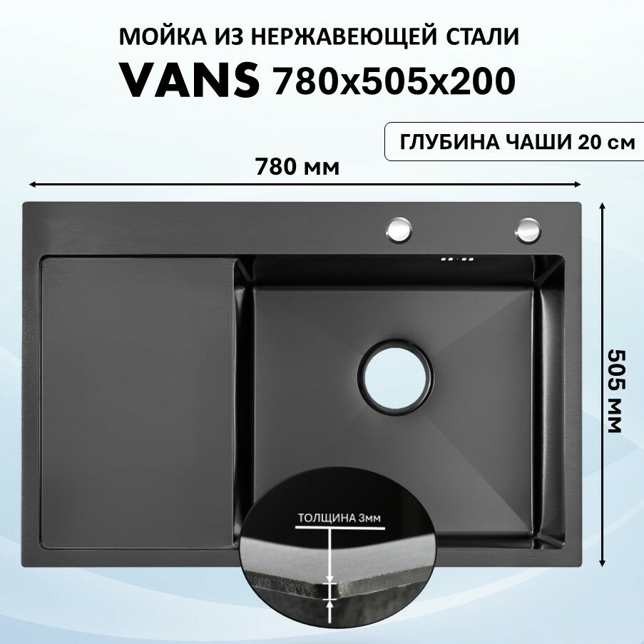 Кухонная мойка VANS 780*505 (780*505) Black левая нерж. сталь