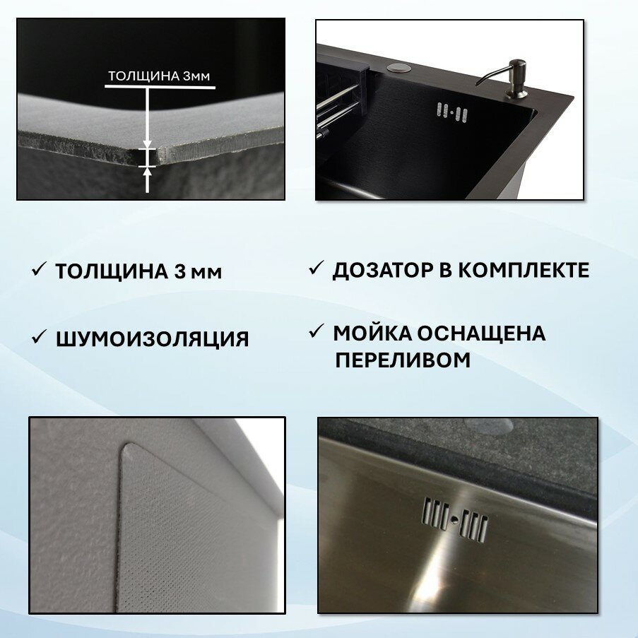 СохранитьКухонная мойка VANS 780*505 (780*505) Black правая интересное: