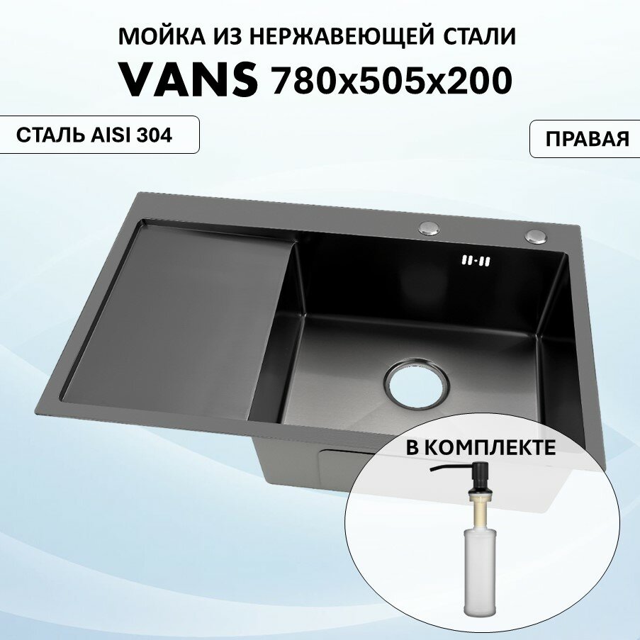 Купить Кухонная мойка VANS 780*505 (780*505) Black правая
