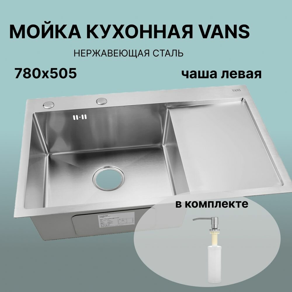 Купить Кухонная мойка VANS 780*505 (780*505) Satin левая нерж. сталь