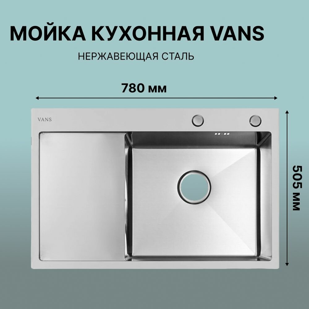 Кухонная мойка VANS 780*505 (780*505) Satin левая нерж. сталь