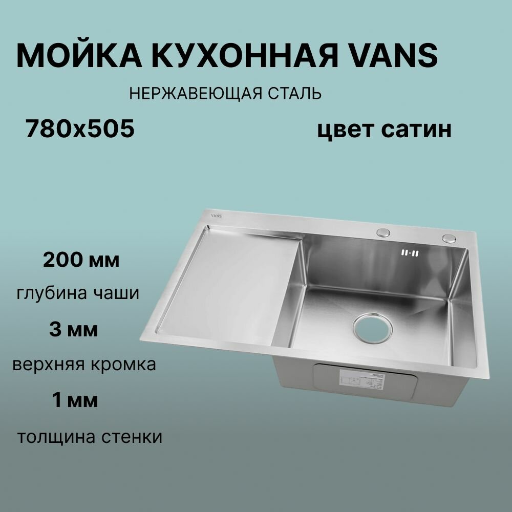 Кухонная мойка из нержавеющей стали "VANS" 780*505*200 мм Satin-R
