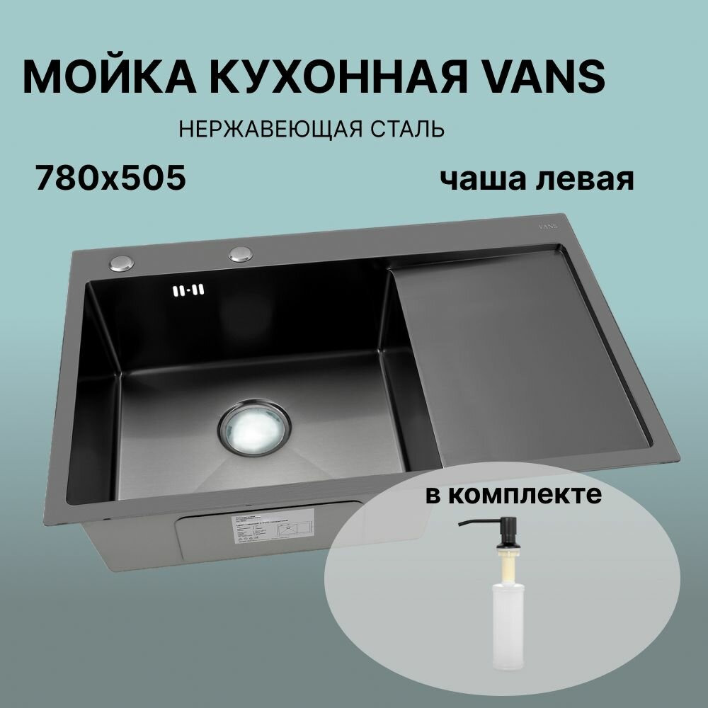 Купить Кухонная мойка VANS 780*505 (780*505) Black левая нерж. сталь