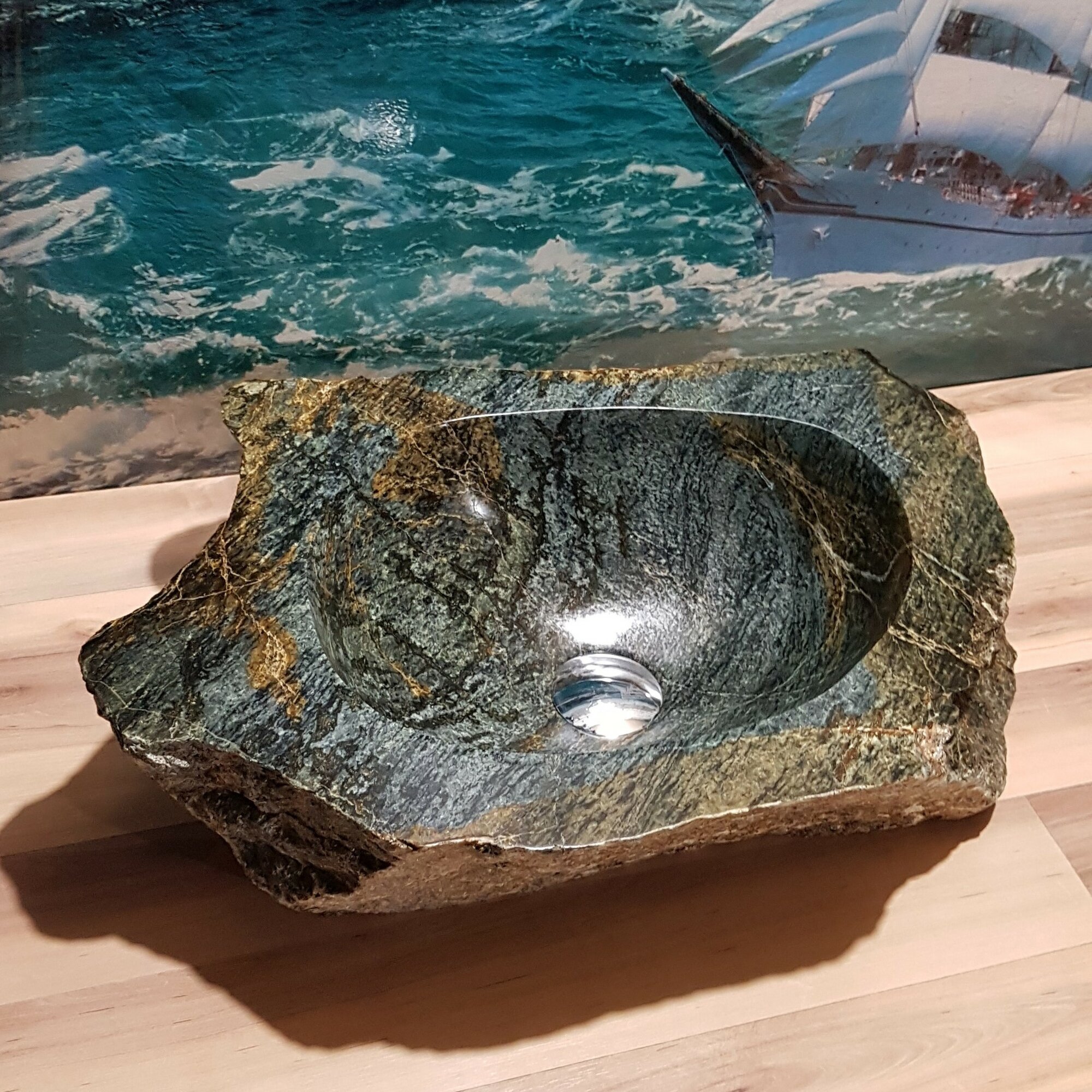 Раковина накладная на столешницу для ванной мойка каменная из натурального /речного/ горного камня Кавказа/43х36х11см