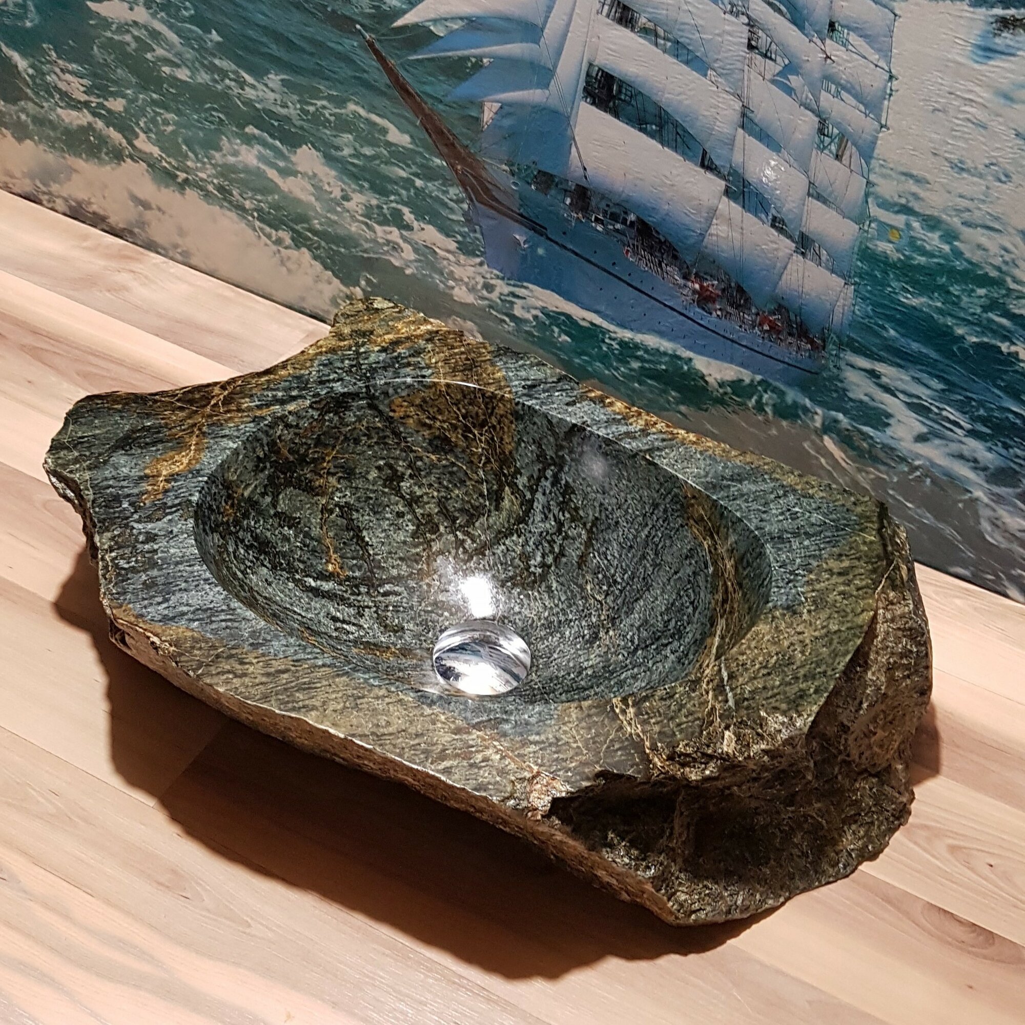 Раковина накладная на столешницу для ванной мойка каменная из натурального /речного/ горного камня Кавказа/45х31х11см