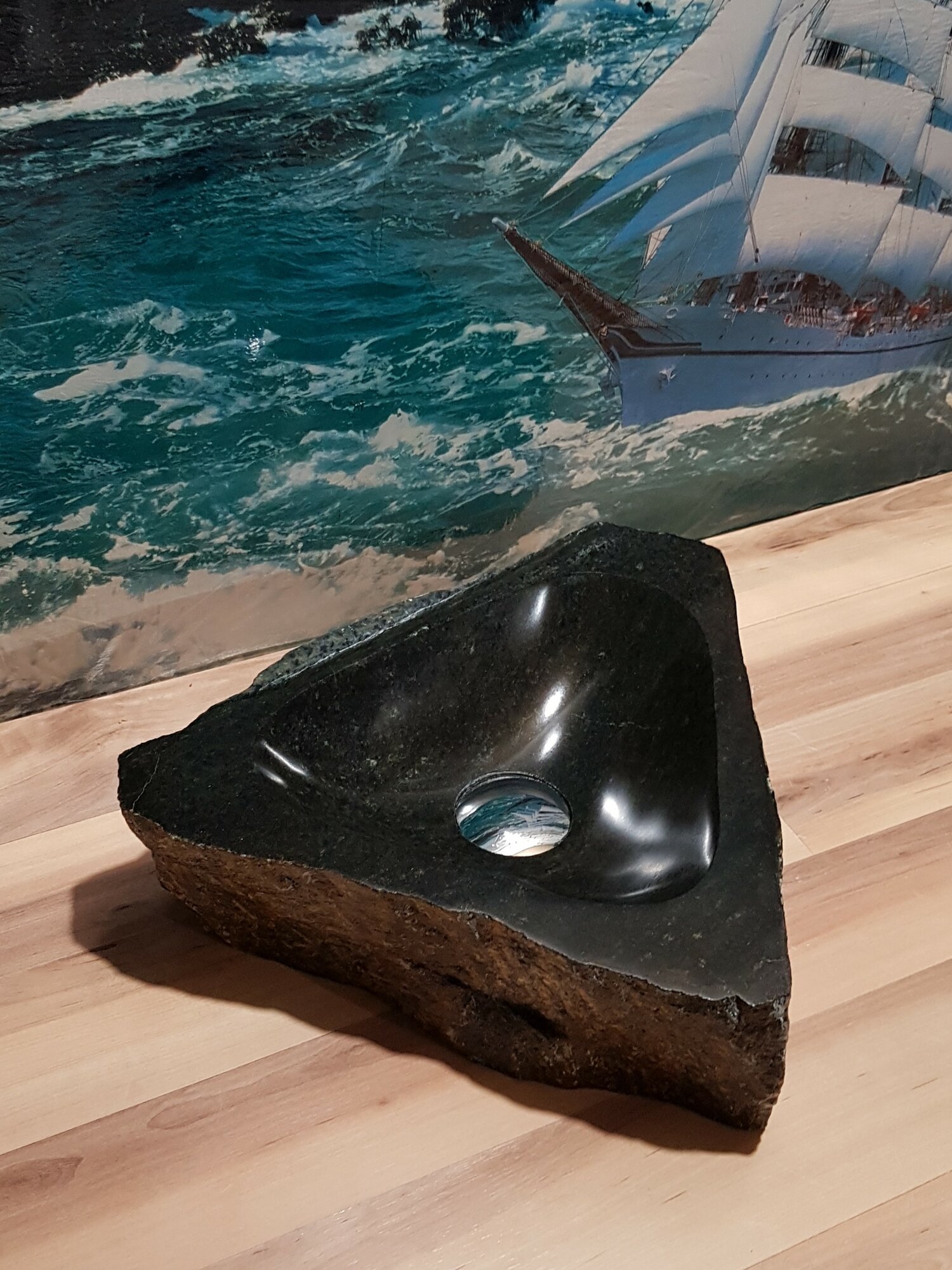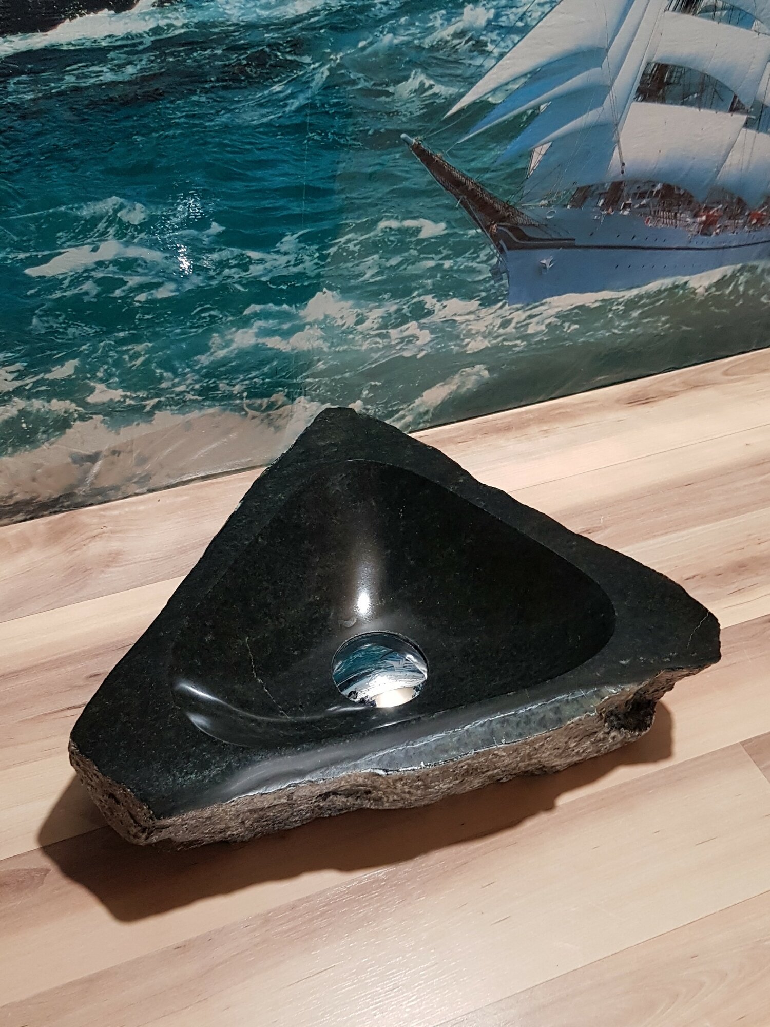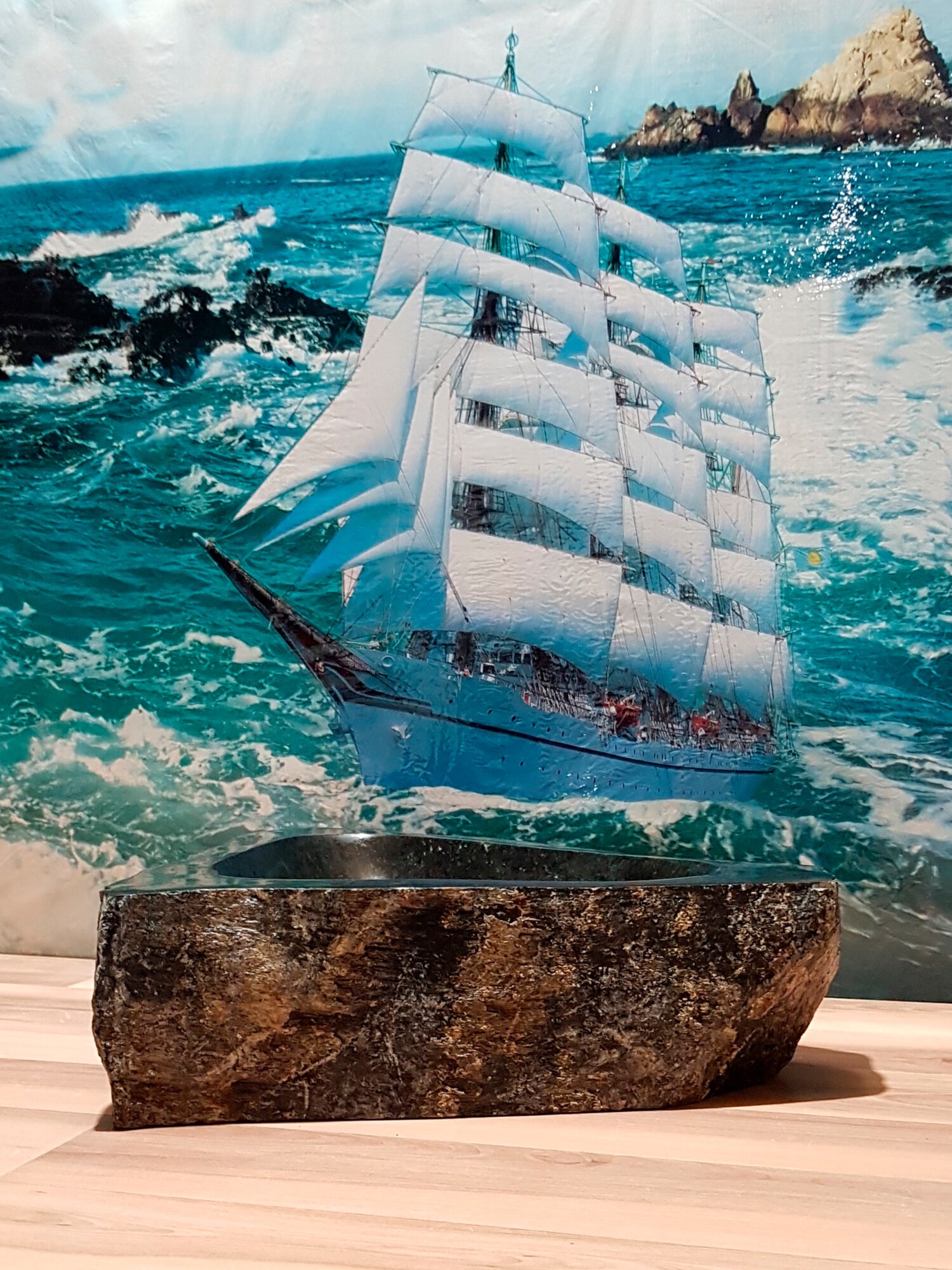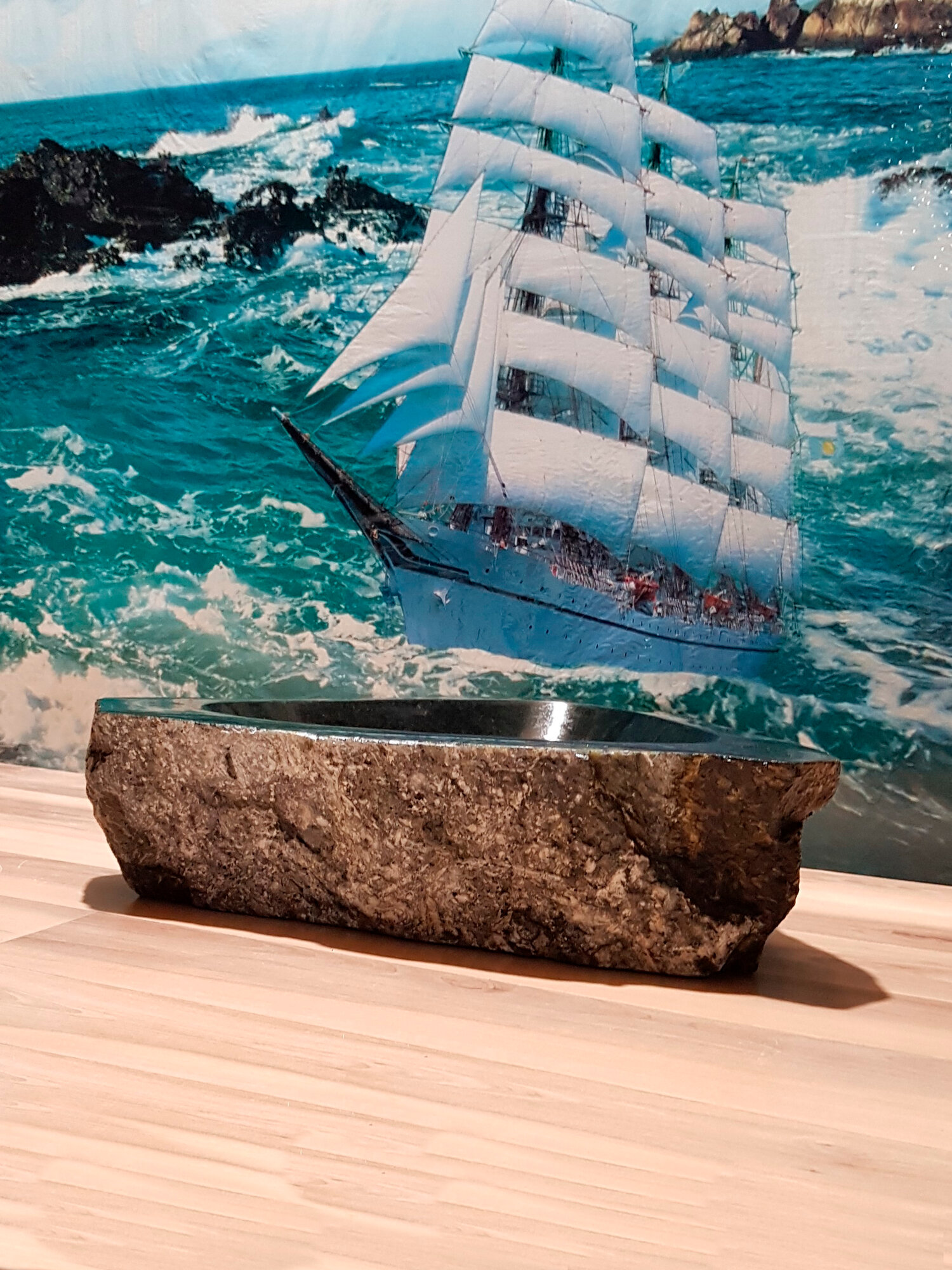 Раковина накладная на столешницу для ванной мойка каменная из натурального /речного/ горного камня Кавказа/45х31х11см