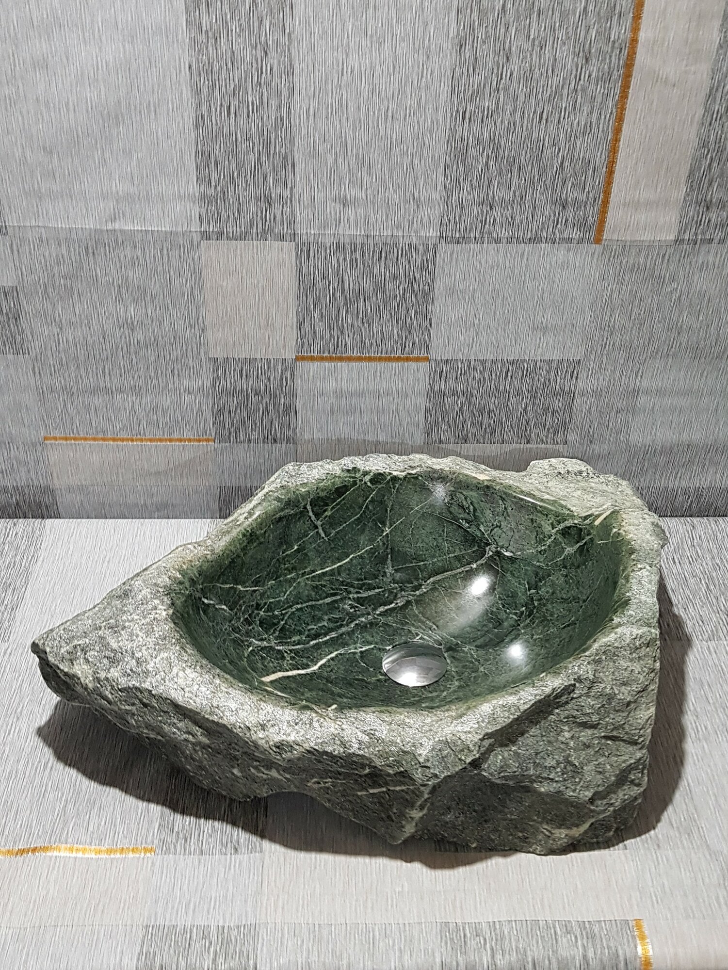 Раковина накладная на столешницу для ванной мойка каменная из натурального /речного/горного камня Кавказа 50х43х18 см