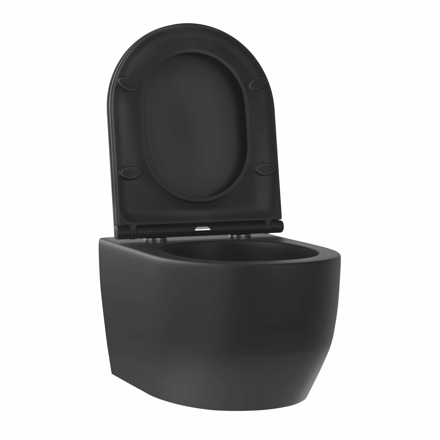 Подвесной унитаз Wellsee Croquis RimFree 182613001: чаша безободкового унитаза с быстросъемным сиденьем микролифт, цвет матовый черный