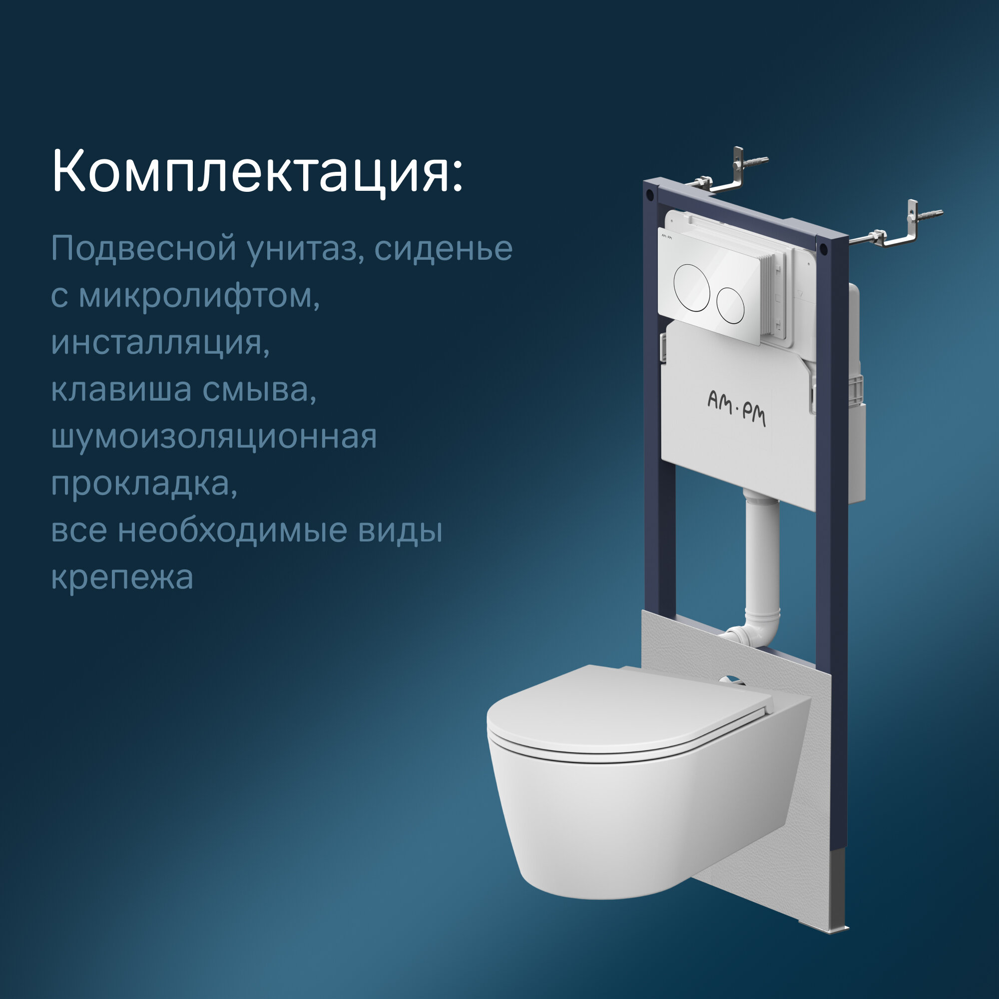 Инсталляция с унитазом AM.PM PrimeFit L комплект 6 в 1: унитаз, инсталяция, крышка-сиденье, шумоизоляция, кнопка, крепёж