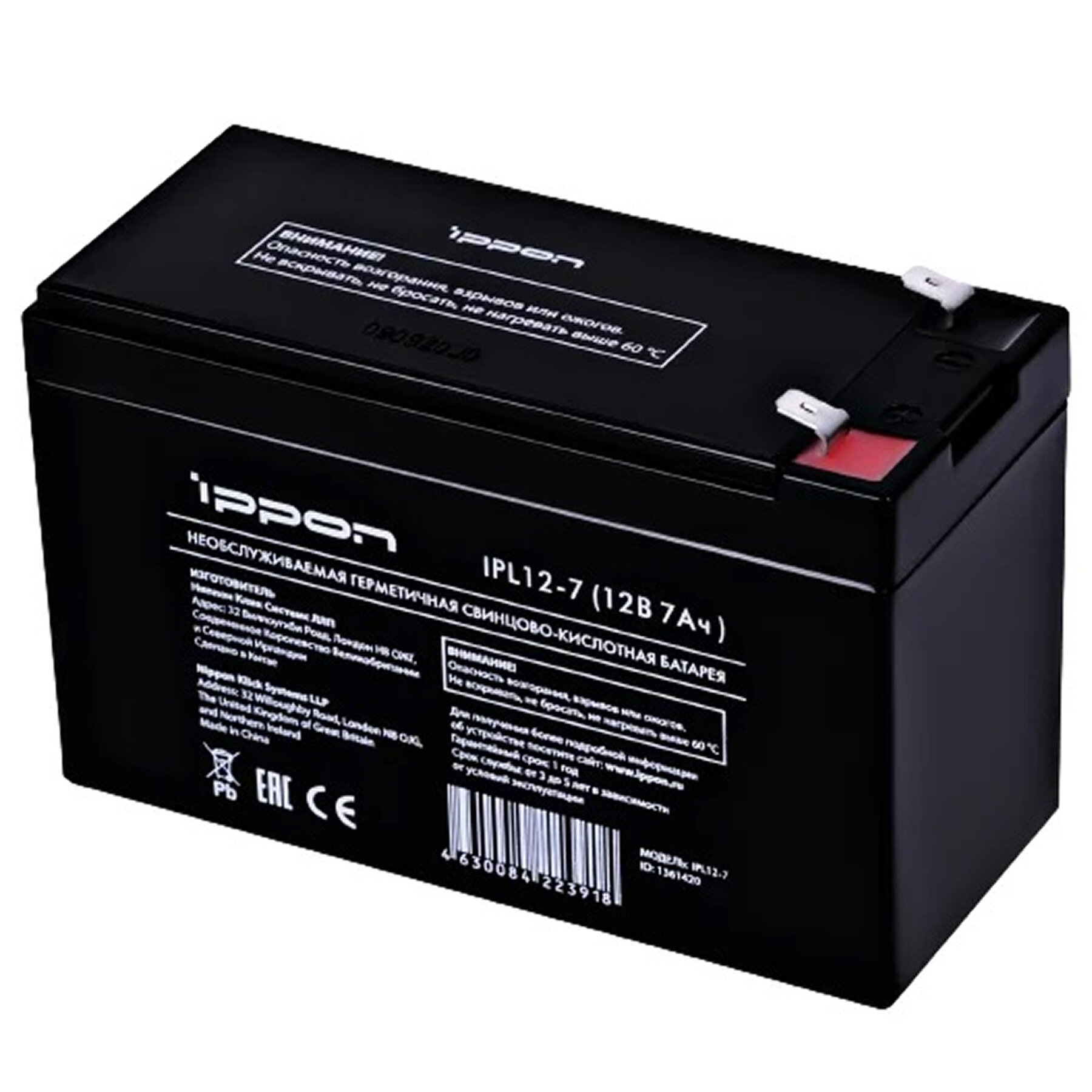 Аккумуляторная батарея Ippon IPL12-7, кислотно-свинцовая, 12 В, черный интересное: