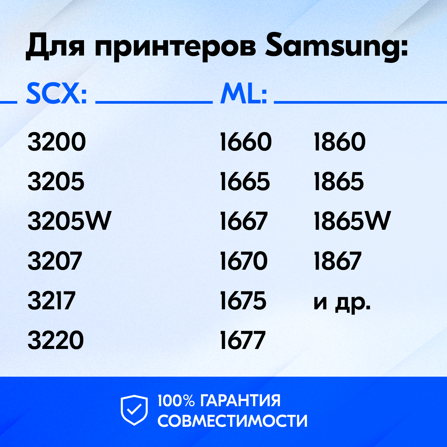 | Модель совместимого принтера | Samsung ML-1660 / Samsung ML-1665 / Samsung ML-1667 / Samsung ML-1860 / Samsung ML-1865 / Samsung ML-1865W / Samsung SCX-3200 / Samsung SCX-3205 / Samsung SCX-3205W / Samsung SCX-3207 |
