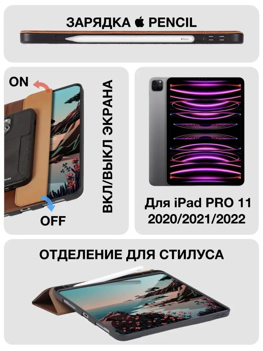 СохранитьЧехол для iPad PRO 11 (2020 2021 2022) ударопрочный, кожаный, цвет коричневый интересное: