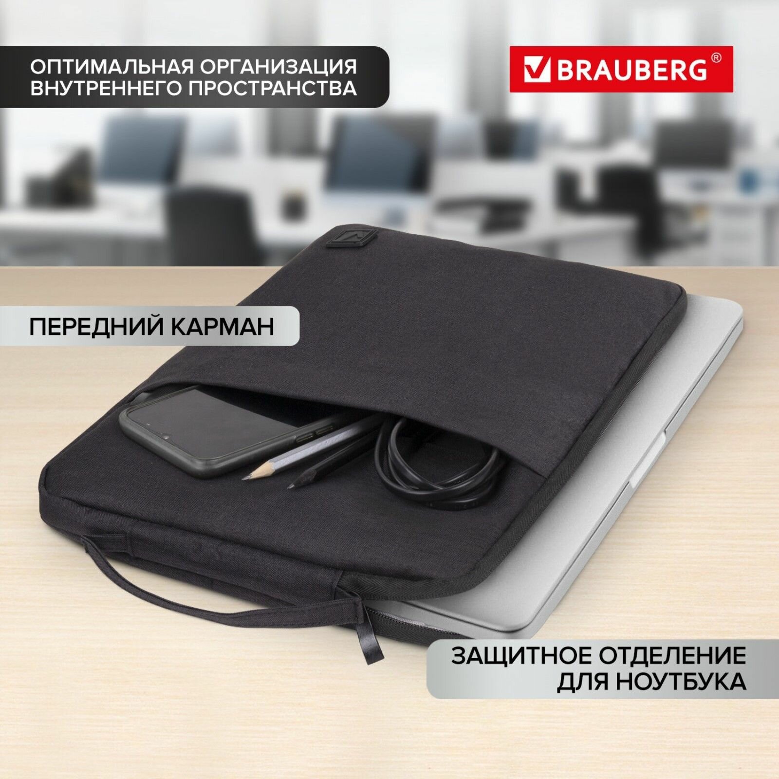 Сумка для ноутбука BRAUBERG Option, 35.5 х 24 х 2.5 см, с ручкой и карманом, чёрная