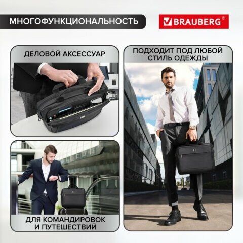 Сумка-портфель BRAUBERG "Protect" с отделением для ноутбука 15.6", 2 отделения, черная, 30х40х7 см, 270831