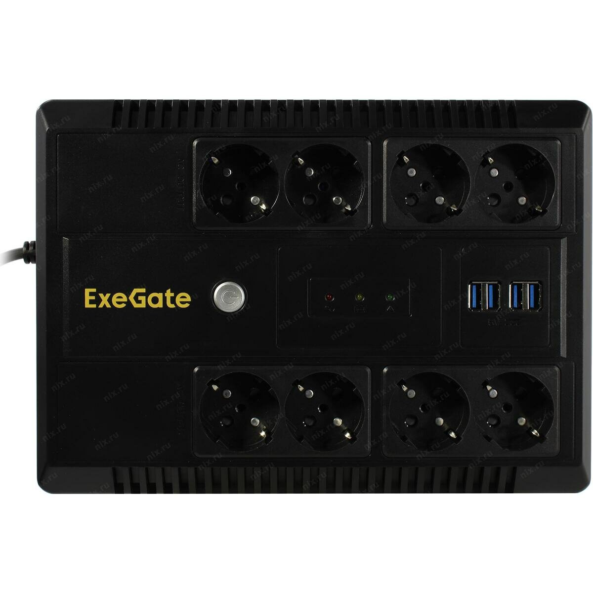 ИБП ExeGate NEO NNB-650.LED.AVR.8SH.CH <650VA/390W, LED, AVR, 8*Schuko, 4*USB-порта для зарядки, Black>