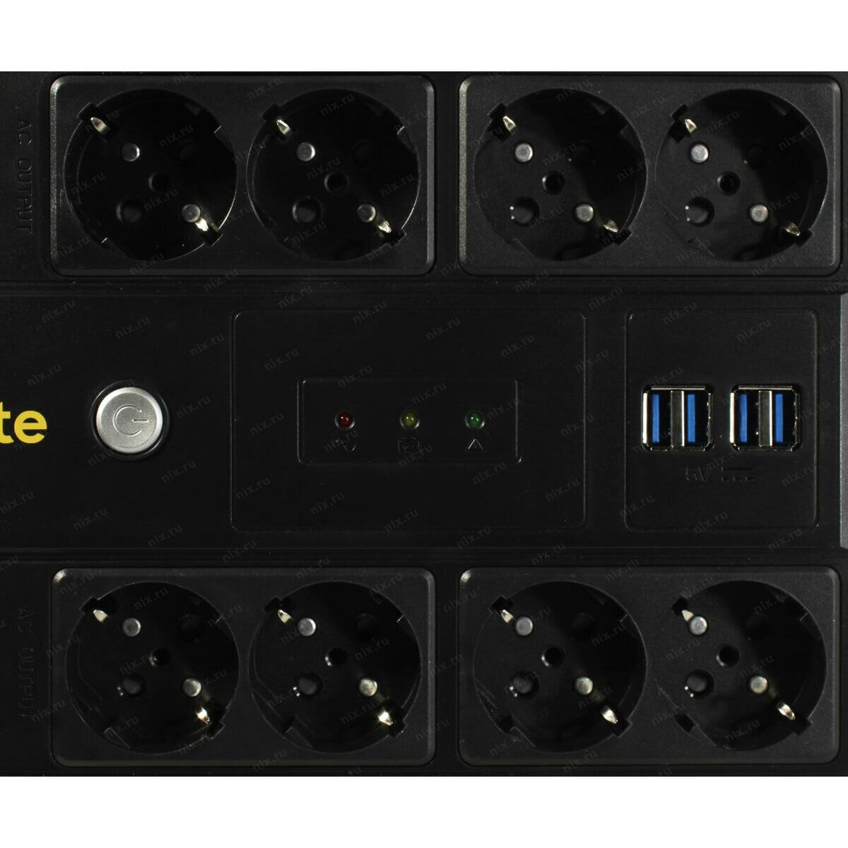 Exegate EX293853RUS ИБП ExeGate NEO NNB-600.LED.AVR.8SH.CH <600VA/360W, LED, AVR, 8*Schuko, 4*USB-порта для зарядки, Black>