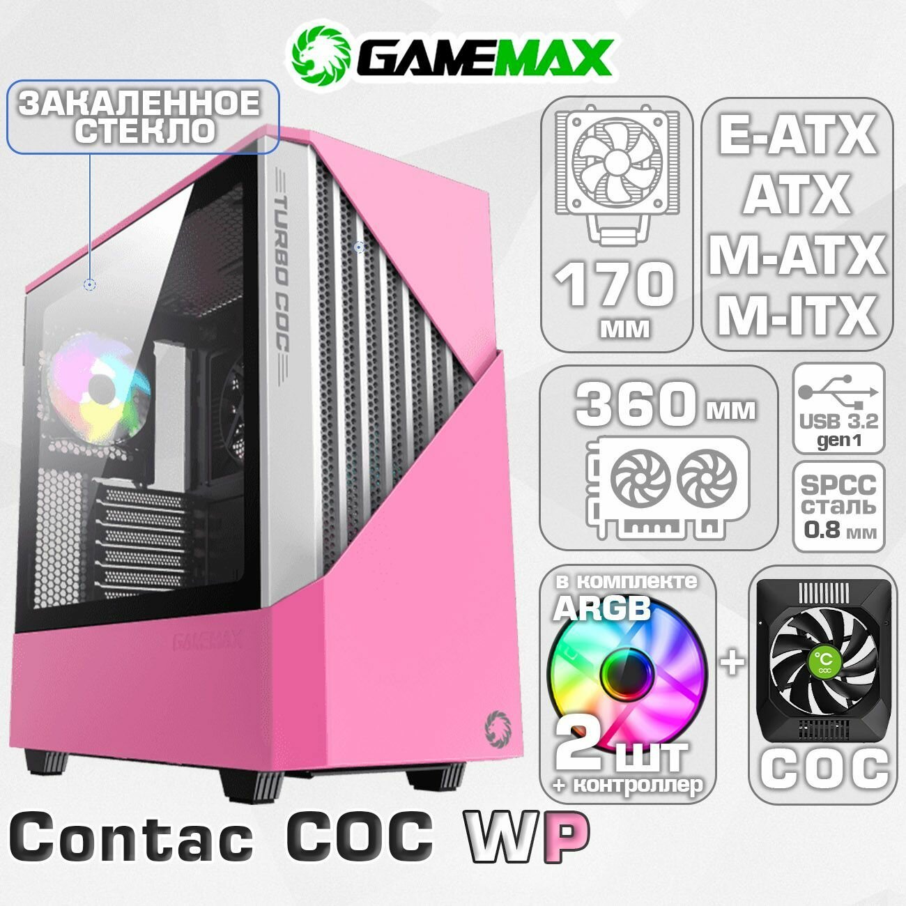 СохранитьКорпус для ПК GameMax Contac COC WP MFG. T806 (Розовый, Midi-Tower E-ATX (282*305мм), ATX, Micro-ATX, Mini-ITX, CPU 170мм VGA 360мм USB3.0, Закаленное стекло,1*120мм+ MB turbo fan) интересное: