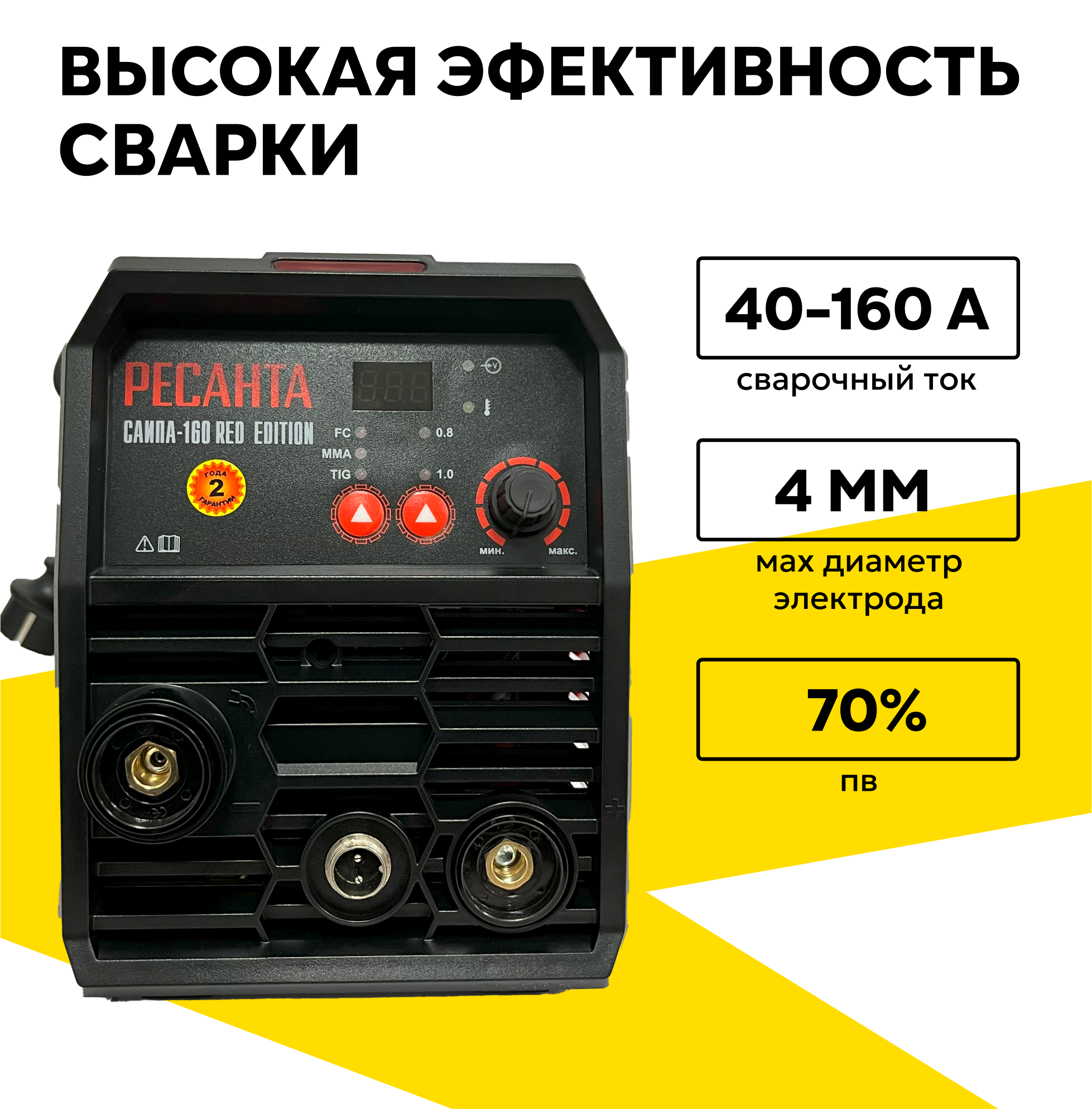 Сварочный полуавтомат САИПА-160 Red Edition Ресанта, 160A, MMA/TIG/MIG, воздушное охлаждение интересное: