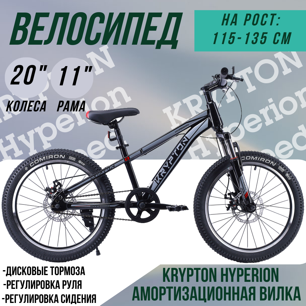 СохранитьДетский велосипед горный 1 скорость. 20" дюймов. 1 скорость. / на рост: 115-135см / Krypton Hyperion. Цвет: чёрный неон интересное: